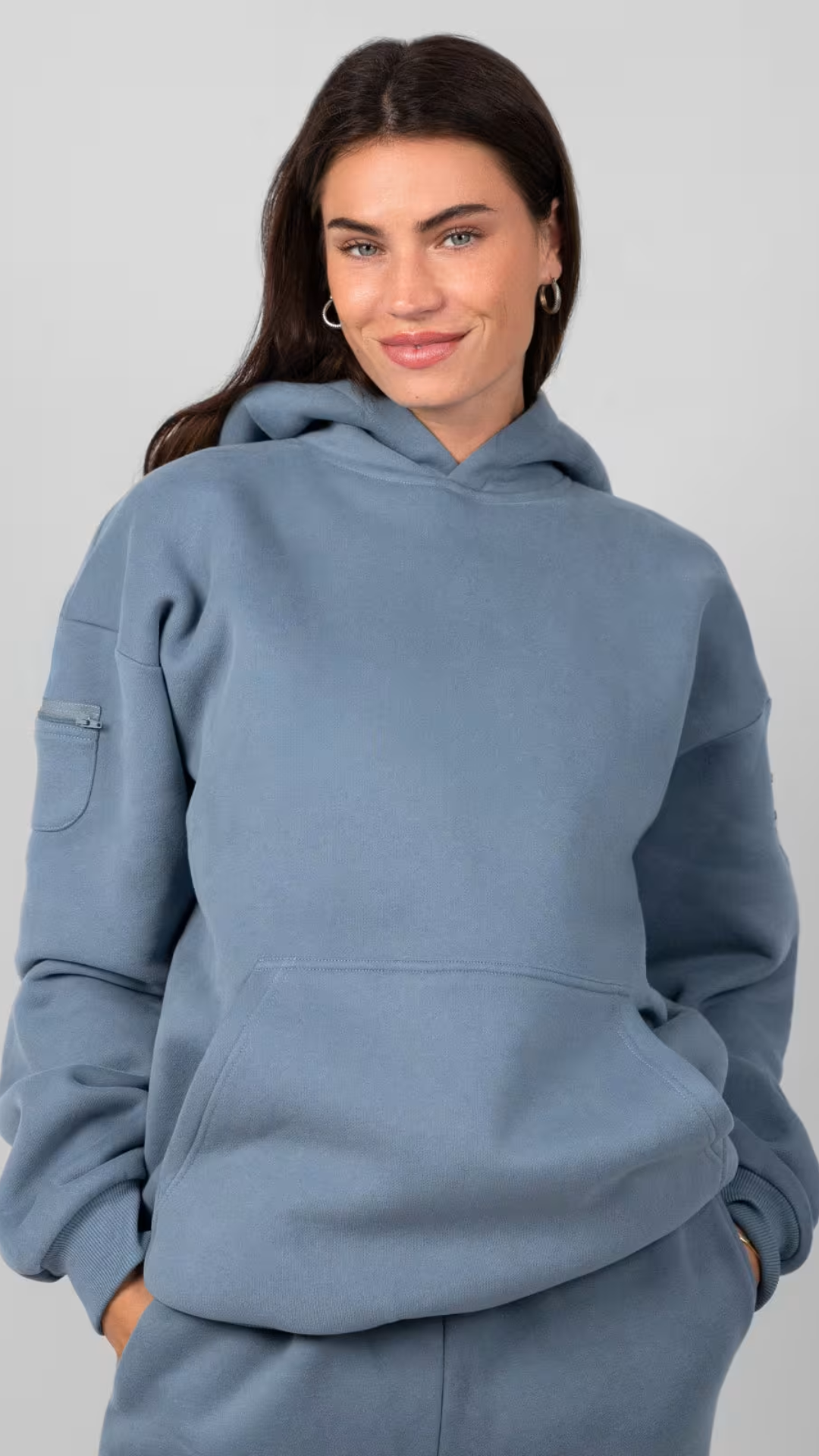 Dä Hoodie isch nöd nume weich – er isch therapy-level soft. Vil Lüüt säged, s’gwicht vom Stoff git ihne es wohligs, grounded Gfühl wie en leichte weighted blanket. Perfekt zum Chillen, zum Reise, zum Flüge oder wenn du einach am Abend entspanne wotsch. Er passt sich deiner Körperwärmi ah und bleibt trotzdem atmig.